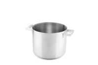 Design minimalista per un pentolame dalle elevate prestazioni. L'elevata conducibilità dell'alluminio puro si sposa con la praticità e l'igiene dell'acciaio. Acciaio Inossidabile 18/10, cuore in alluminio, esterno in acciaio per induzione. Superficie esterna ed interna lucidate a specchio. Maniglie con rivetti in acciaio inossidabile 18/10, a tenuta rinforzata.